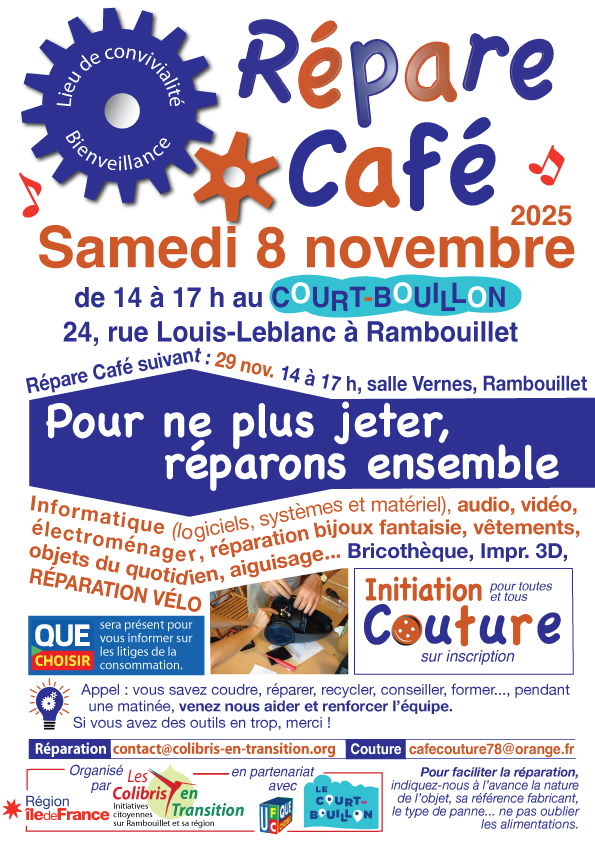 On y apporte des objets réparables et on se met à l’ouvrage avec une personne qui pourra vous conseiller. Les bénévoles « experts » en la matière, électriciens, couturières, réparateurs de bicyclettes… sont là pour vous aider dans la limite de leurs connaissances pratiques qui peuvent être mises au profit de tous.